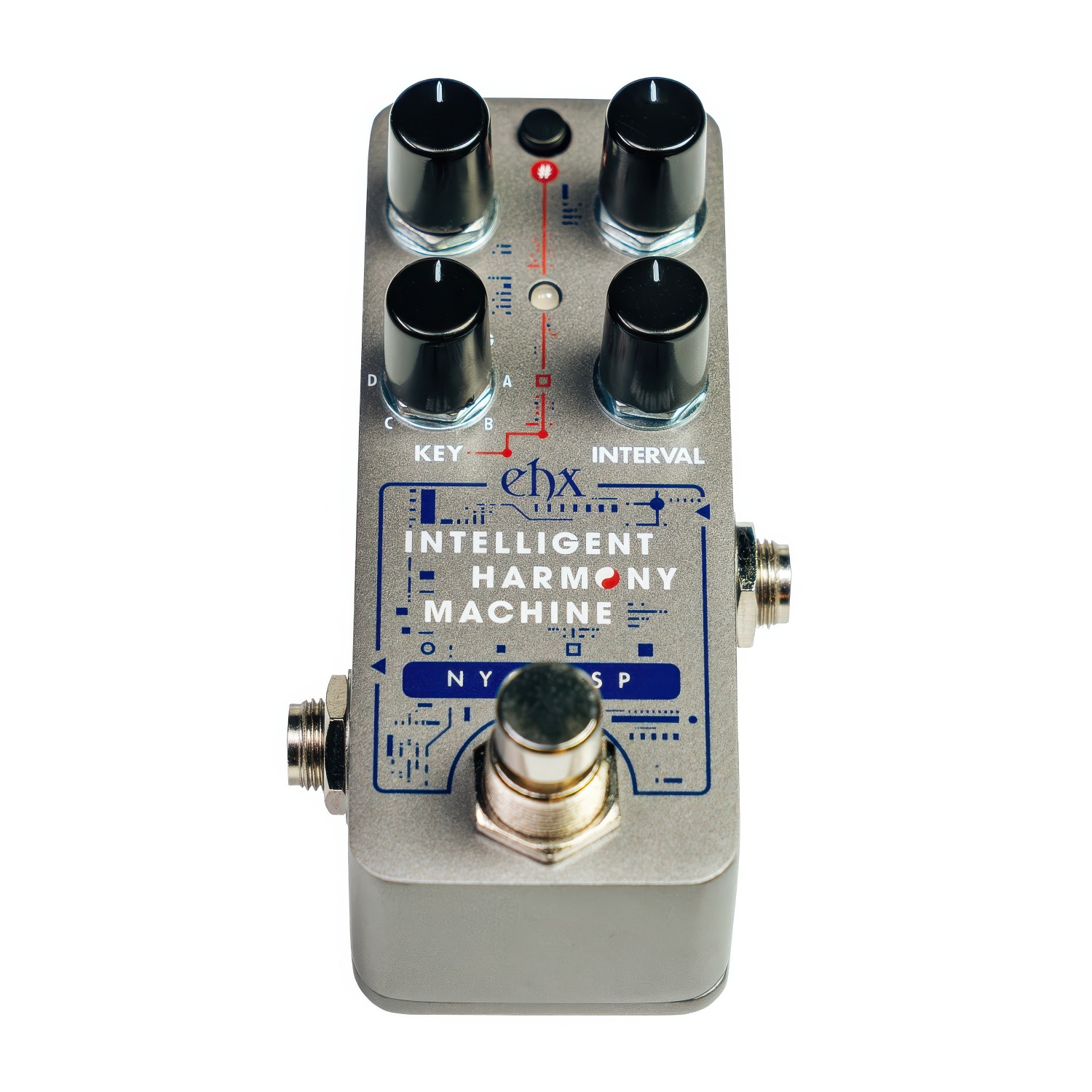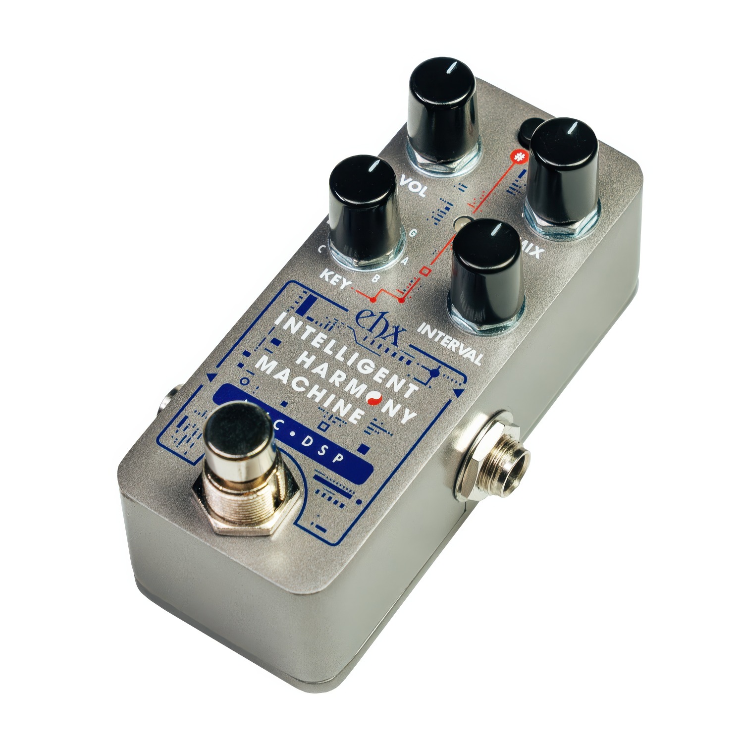 De Pico Intelligent Harmony Machine is ondergebracht in een pico-behuizing van Electro-Harmonix en heeft eenvoudige bedieningselementen. De KEY-knop, in combinatie met de #-toets, bepaalt de toonsoort van de gegenereerde harmonieën. INTERVAL selecteert een van de 10 harmonische intervalopties (zie hieronder). Met de MIX- en VOL-knoppen kunt u de wet/dry-mix en het uitgangsvolume regelen. Houd de #-toets ingedrukt om de Dual-modus te activeren, die een tweede stem toevoegt aan de gegenereerde harmonie om prachtige driestemmige harmonieën te creëren wanneer deze worden gemixt met het dry-signaal.