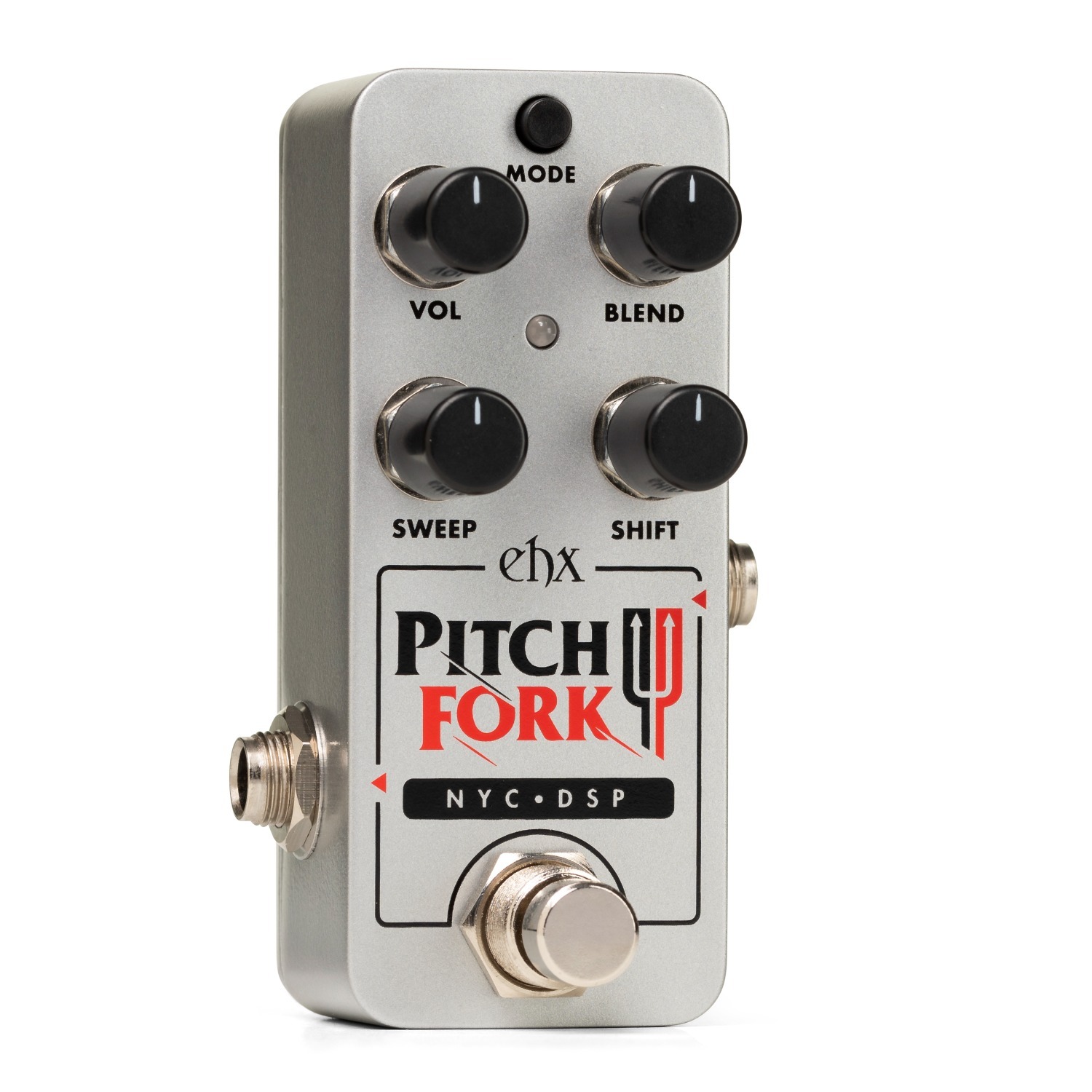 De Pico Pitch Fork is een mini-versie van de befaamde Pitch Fork pitchshifter en biedt nauwkeurige harmonieën en polyfone shifting in een ultracompact ontwerp. Het pedaal levert soepele intervallen variërend van subtiele detuning en octaafverdubbeling tot uitgesproken harmonieën, duikvluchten en synth-achtige pitchsprongen. Zowel noten als akkoorden worden stabiel gevolgd. Met de Shift-regeling kies je het interval en met de Blend-knop meng je het bewerkte signaal met de droge toon, van natuurlijke octaafversterking tot uitgesproken effect-texturen. Een Momentary/Latch-schakelaar geeft je volledige controle over wanneer en hoe de pitch-shift actief is—perfect voor accenten, melodische overgangen of gelaagde harmonieën. Voor dikke riffs, orgelachtige octaven of vloeiende pitch-sweeps levert de Pico Pitch Fork professionele pitch-shifting in het kleinst mogelijke formaat.