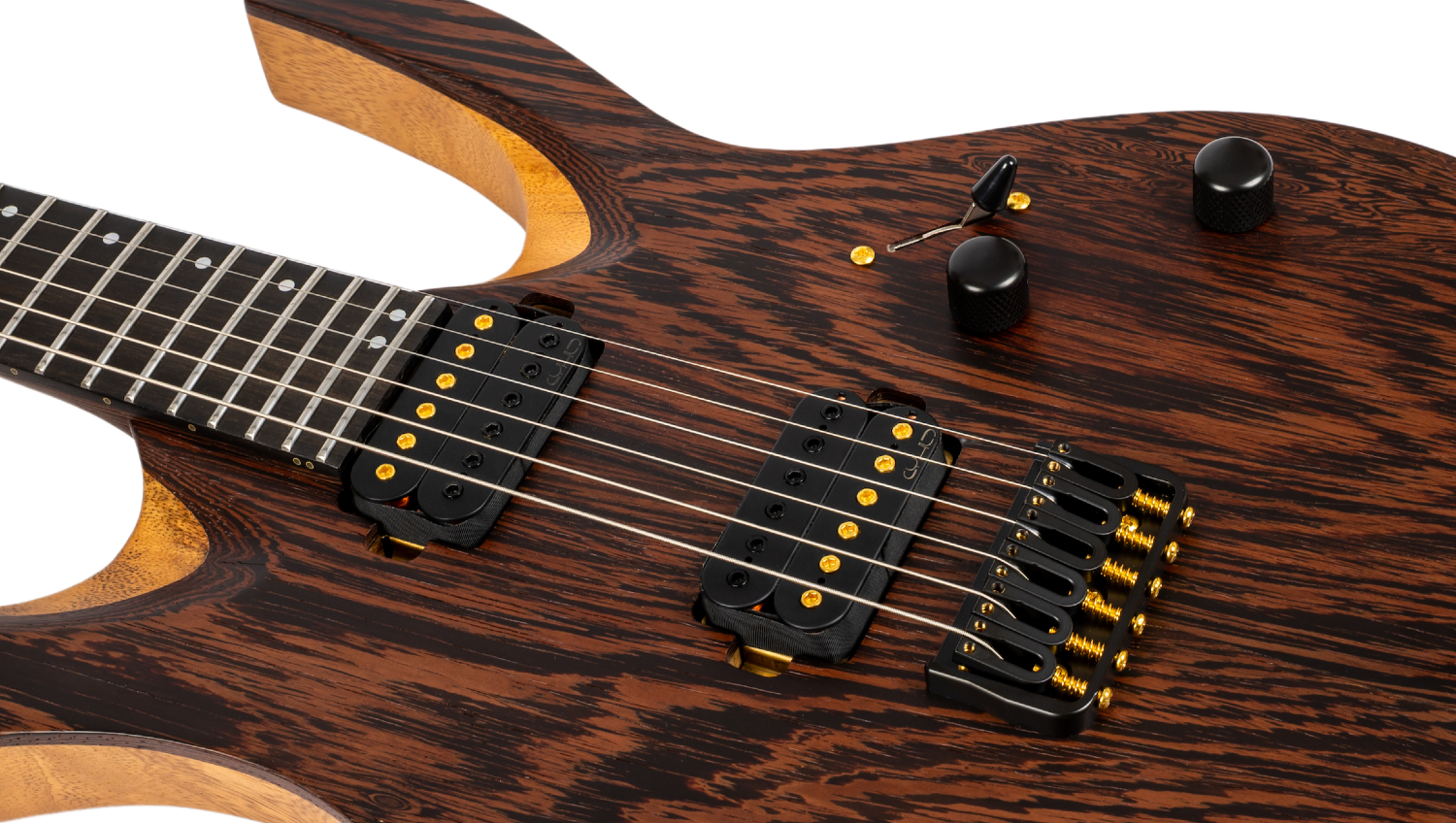 De S-1000 PRO bewijst dat professionele specificaties niet noodzakelijkerwijs onbereikbaar zijn. Hij biedt exotisch hout en hoogwaardig vakmanschap tegen een zeer betaalbare prijs. De Black Limba-body met een Wengé-top biedt krachtige middentonen en een hoge geluidsdefinitie, terwijl de gelijmde Walnut/Wengé-hals en de Ebony-toets de stabiliteit, sustain en speelbaarheid bieden die je van een veel duurdere gitaar mag verwachten, allemaal versterkt door 24 jumbo-frets voor absolute precisie en controle.
