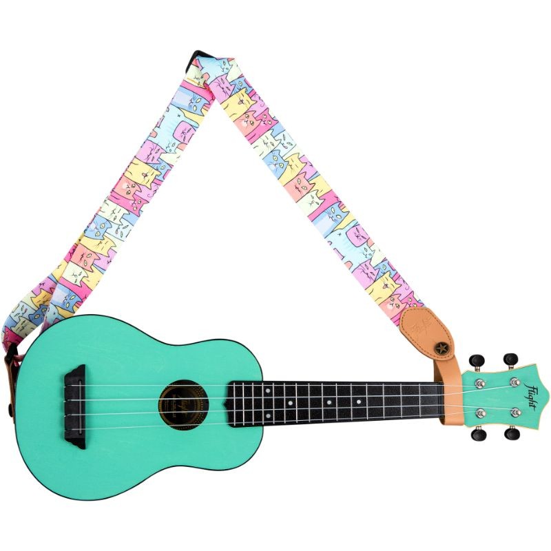 What can we say about cats? Strong, measured, uncompromising and beautiful. This strap is purr-fect (sorry) if you fit this criteria.The strap adjusts in length and features high quality leather strap ends and a leather tie-back. Flight wants you to be able to focus on being the best musician you can be, and a strap can help you with that process. Ukulele straps look great, offer peace of mind, provide comfort, and liberate your chording hand to be able to move up and own the neck without worrying about how to hold and support your ukulele.
