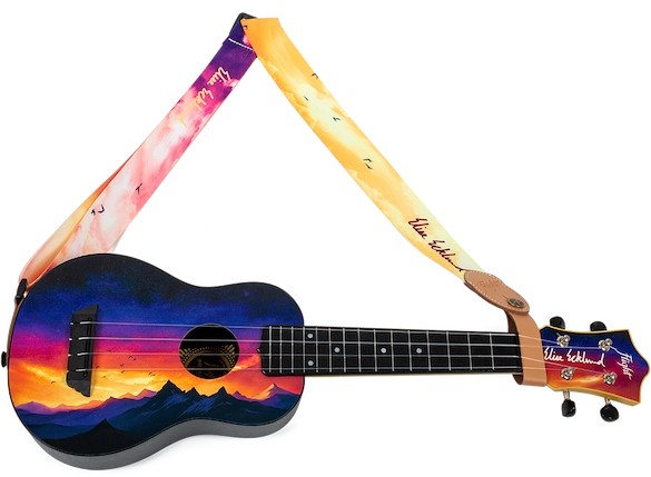 The Sunset Elise Ecklund Signature Ukulele Strap features light pastel colors that complement the Elise Ecklund Signature Travel Ukulele, but it also looks great on any ukulele. The strap adjusts in length and features high quality leather strap ends. Flight wants you to be able to focus on being the best musician you can be, and a strap can help you with that process. Ukulele straps look great, offer peace of mind, provide comfort, and liberate your chording hand to be able to move up and own the neck without worrying about how to hold and support your ukulele.