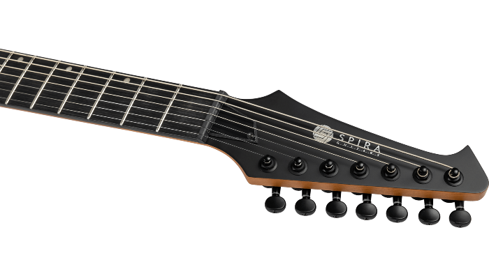 Een paar Spira's VillainTM zevensnarige humbuckers leveren gezaghebbende, heldere tonen die uitblinken in high-gain instellingen. Het gestroomlijnde ontwerp van de gitaar en de eersteklas hardware plus vergrendelbare stemknoppen bieden een uitstekende stemstabiliteit en precieze intonatie, waardoor het een betrouwbare metgezel is voor zowel podium- als studiogebruik.