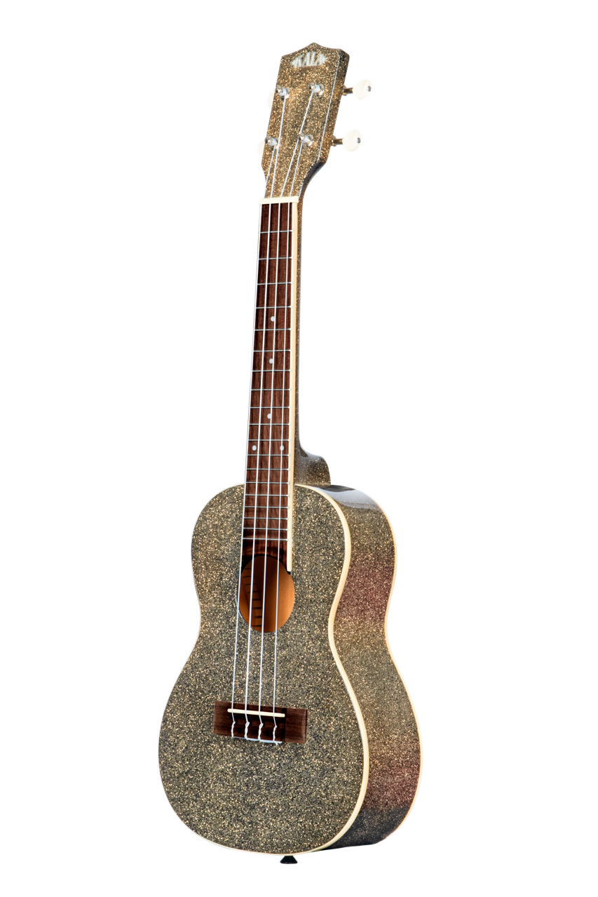 Welcome to the Roaring 2020’s! 1920 would have been jubilant to have these glittery, glamorous ukuleles! So classy—with colors like Ritzy Red, Pink Champagne, Rhapsody in Blue, Stardust Gold, Gatsby Green and Galaxy Black outlined in cream binding and gloss finish—they are hard to walk past. Each one makes you want to stop and stare and see if they sound as good as they look—and they do!