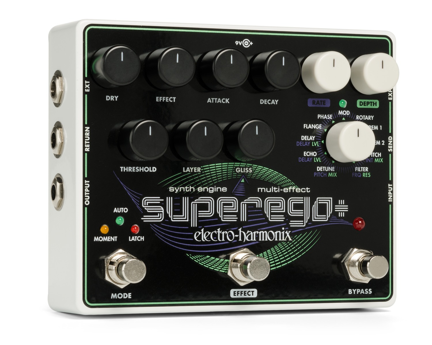 De SuperEgo Plus reageert muzikaal op aanslag en past zowel bij traditionele gitaarpartijen als experimentele ambient-technieken. Ideaal voor filmische drones, textuur-bedden en hybride synth-gitaarcombinaties.