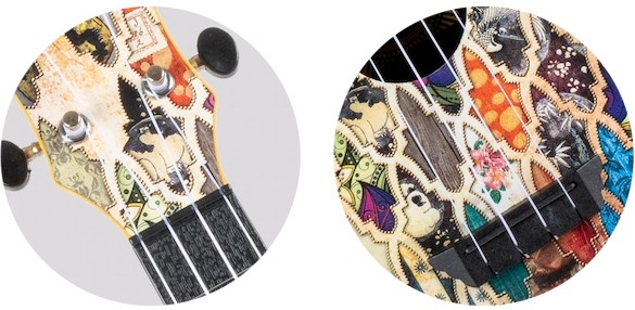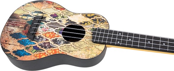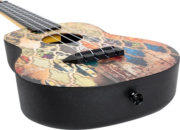 • Premium Features:  Granada Print, Zero Fret, Wooden Top, Arched back, Open Geared Tuners, ABS Fretboard, Side Dots, Strap Button, Aquila Strings.
