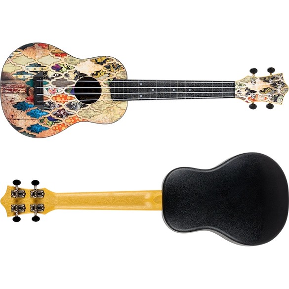 Flight Travel Ukuleles have been acclaimed for their great sound, playability, durability, and value.  Flight Concert Travel Ukuleles (TUC) have a slightly larger body and a slightly longer fretboard than the Soprano Travel Ukulele, resulting in a larger sound–all the great qualities of the TUS, but bigger.  Players with larger hands will enjoy the extra room on the fretboard.The sound board of the Flight TUC-40 Granada, made from laminate linden wood, features a design inspired by the captivating Arabic patterns of the Alhambra Palace in Granada, Spain.  The ukulele also sports an ABS body, neck, fretboard and bridge. The result is a ukulele with low action that is easy to clean and maintain.  Want a ukulele that is tough, looks amazing, sounds great, plays well, and is ideal for players of any skill level?  If so, check out the Flight TUC-40 GRANADA Concert Travel Ukulele at your local Flight dealer!