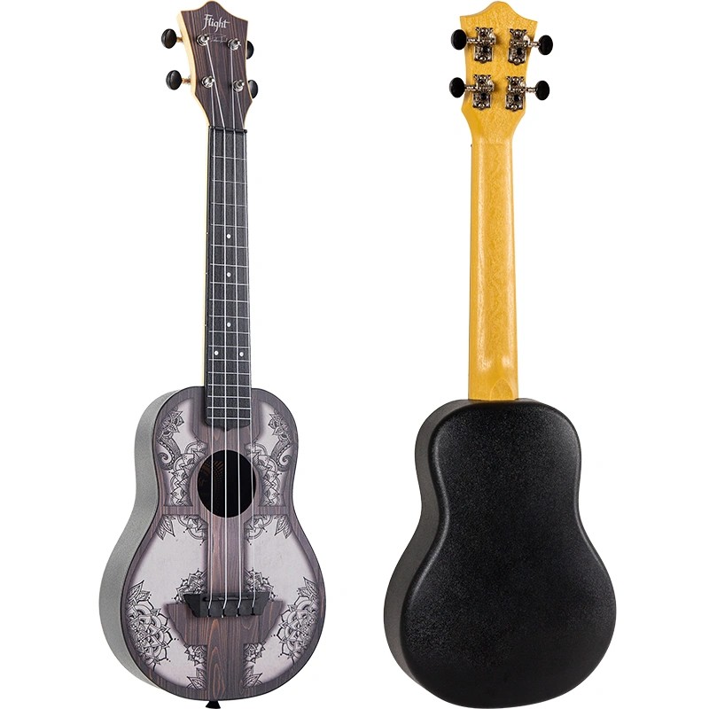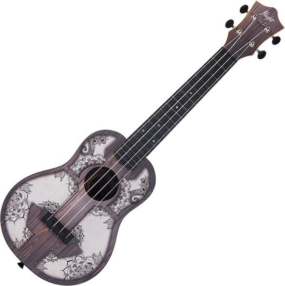 Flight Travel Ukuleles have been acclaimed for their great sound, playability, durability, and value.  Flight Concert Travel Ukuleles (TUC) have a slightly larger body and a slightly longer fretboard than the Soprano Travel Ukulele, resulting in a larger sound–all the great qualities of the TUS, but bigger.  Players with larger hands will enjoy the extra room on the fretboard.The soundboard of the Flight TUC-40 MW, which is made of laminate linden wood, features a geometric configuration of symbols similar to those found in Eastern spiritualism.  The ukulele also sports an ABS body, neck, fretboard and bridge.  The result is a ukulele with low action that is easy to clean and maintain.  Want a ukulele that is tough, looks amazing, sounds great, plays well, and is ideal for players of any skill level?  If so, check out the Flight TUC-40 MW Concert Travel Ukulele at your local Flight dealer!