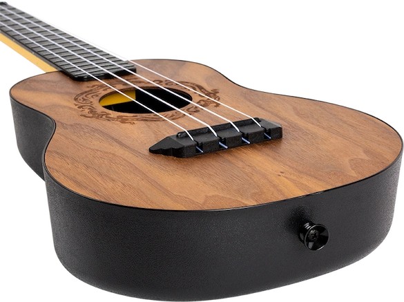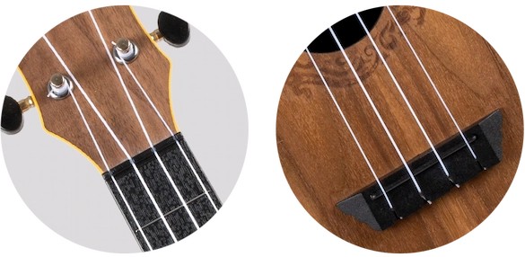 • Premium Features:  Laminate Walnut Soundboard, Laser Etched Hand Drawn Rosette, Zero Fret, Wooden Top, Arched back, Open Geared Tuners, ABS Fretboard, Side Dots, Strap Button, Aquila Strings.