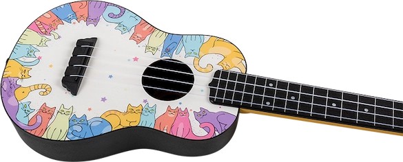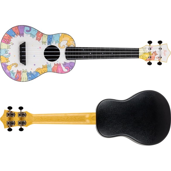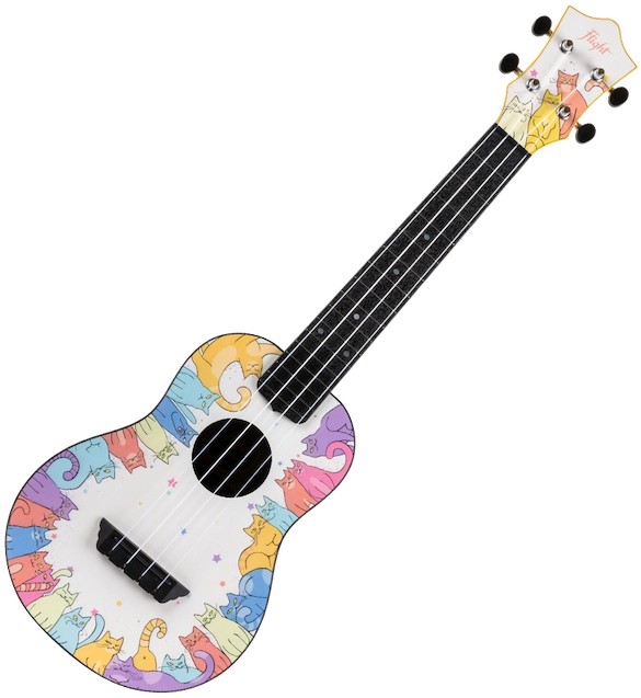 What’s a cat’s favorite movie?  The Sound of Mewsic!Let the hills come alive with the sound of mewsic with the TUC-KITTY, the purrfect instrument for any cat lover!  The TUC-KITTY is like all other Flight Travel Ukuleles, offering great sound, playability, durability, and value.  Flight Concert Travel Ukuleles (TUC) have a slightly larger body and a slightly longer fretboard than the Soprano Travel Ukulele, resulting in a larger sound–all the great qualities of the TUS, but bigger.  Players with larger hands will enjoy the extra room on the fretboard.The TUC-KITTY Travel Ukulele includes a linden wood top with an ABS body, neck, fretboard and bridge.  The result is a ukulele with low action that is easy to clean and maintain.  Want a ukulele that shows you are a cat lover while still being tough, sounding great, and plays well?  If so, check out the Flight TUC-KITTY Ukulele at your local Flight dealer!