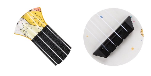 • Premium Features:  Kitty Print, Zero Fret, Wooden Top, Arched back, Open Geared Tuners, ABS Fretboard, Side Dots, Strap Button, Aquila Strings.