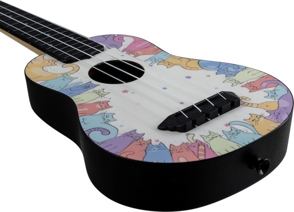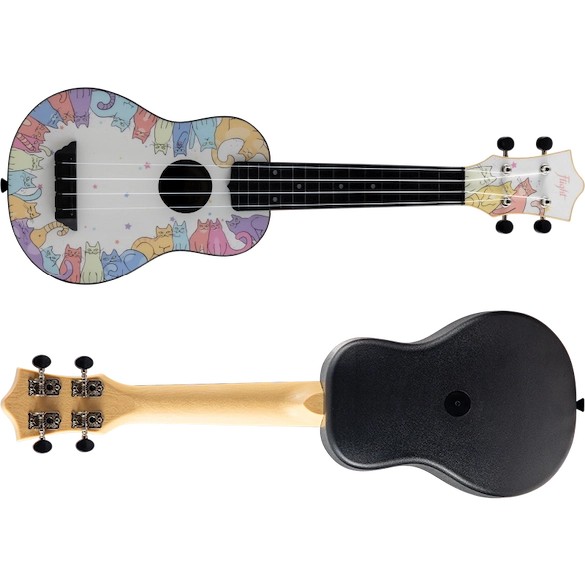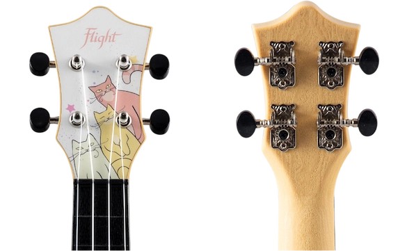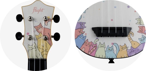 In ancient times cats were worshipped as gods, and they have not forgotten this… If you’re a cat lover, this is the ukulele for you!Let the hills come alive with the sound of mewsic with the TUS40 Kitty, the purrfect instrument for any cat lover!  The TUS40 Kitty is like all other Flight Travel Ukuleles, offering great sound, playability, durability, and value. The TUS40 Kitty Travel Ukulele includes a Linden top with an ABS body, neck, fretboard and bridge. The result is a ukulele with low action that is easy to clean and maintain.  Want a ukulele that shows you are a cat lover while still being tough, sounding great, and plays well?  If so, check out the Flight TUS40 Kitty Ukulele at your local Flight dealer!