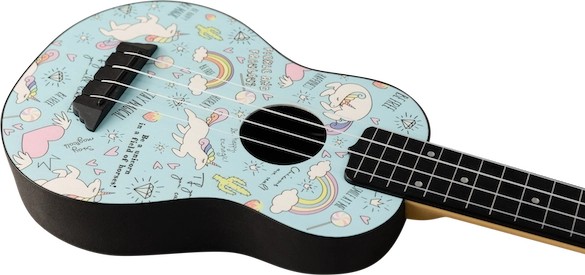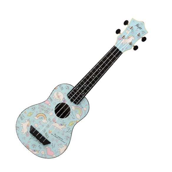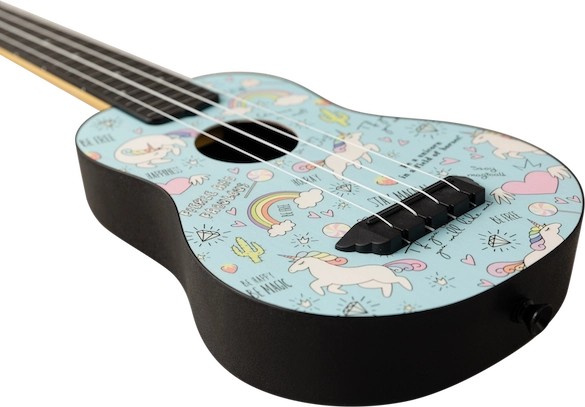 Unicorns and ukuleles… a magical combination!  Presenting our TUS-40 Unicorn Travel Ukulele. The TUS-40 Unicorn is a unique and charming uke that features a beautiful rainbow and unicorn design on the soundboard and headstock. With a body built unapologetically from ABS plastic and a linden wood top, the sound quality and durability of this ukulele will blow you away. This uke is a must for the unicorn loving ukulele player in your life!