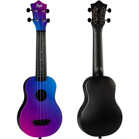 Purple and blue are our all-time favorite colors. We’re in love with this new design, and you will be too!The Flight Story Ultra Travel Ukulele is a polycarbonate reinforced plastic soprano travel ukulele with a thin, resonant, and responsive lattice-braced soundboard and fluorocarbon strings, creating a bright and punchy sound. With a zero fret and precision engineering, the instrument features ideal action and excellent intonation for an enjoyable playing experience, and the slotted bridge makes string changes easy to accomplish.A pop of color makes everything more fun! Flight Story Ultra is waiting for you.