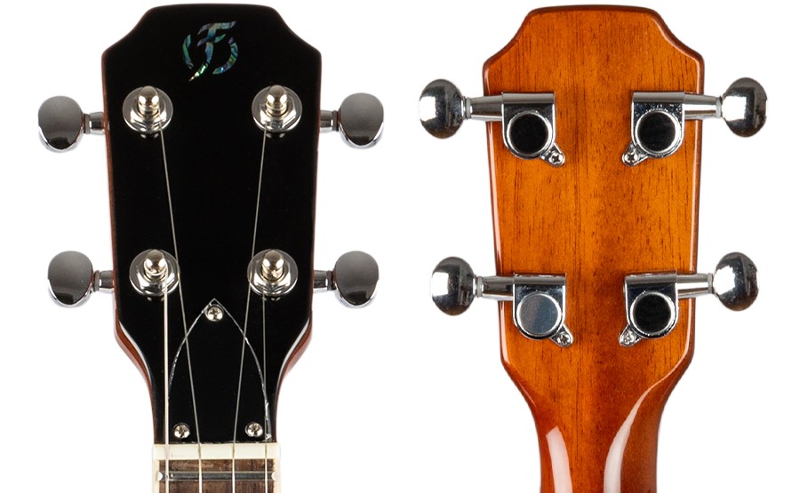 • Premium Features: Tenor ukulele, electric ukulele, metal strings, flamed maple top, solid body, double cutaway, mahogany body and neck, black veneer headstock, bound fretboard, bone nut, zero fret, inlay position markers, side position markers, closed geared tuners, dual humbucker pickups in HH configuration, one volume control, one tone control, three-way switch, hardtail fixed bridge.